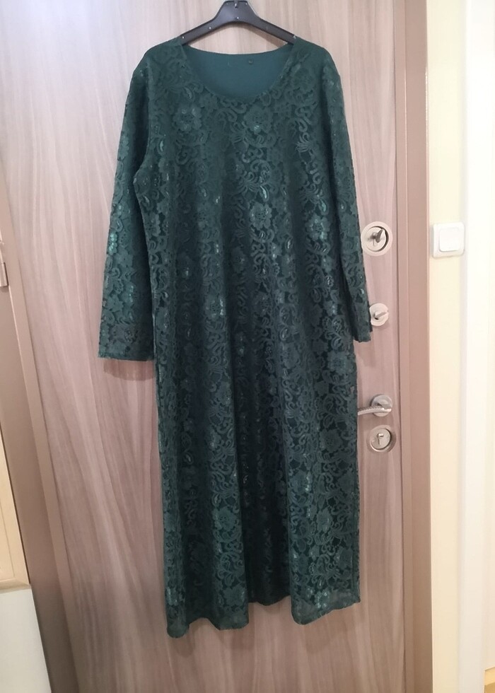 Omuz 45 Kalça 66 Boy 1.30cm Dantelli Abiye Zümrüt rengi Likralı 2 beden diye geçiyor