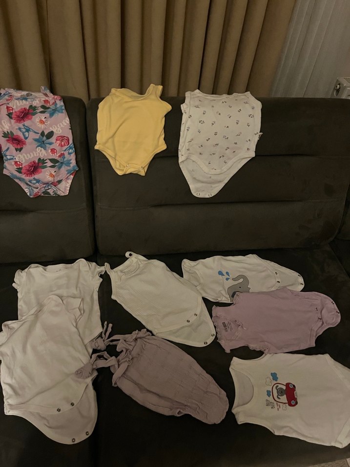 Beyaz, askısız ve dantelli detaylara sahip bebek body, küçük kızlar için zarif bir görünüm sunar. 2 tanesinib cit citinda sorun var digerleri saglam temiz , karisik markalar