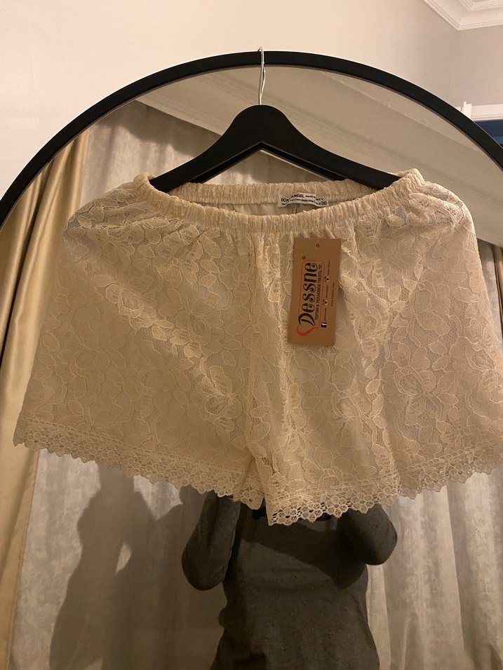 Yumuşak pamuktan yapılmış, dantel detaylı, nakışlı beyaz mini şort. Gevşek kesimi ve bohem vintage tarzıyla romantik akşamlar için uygun.