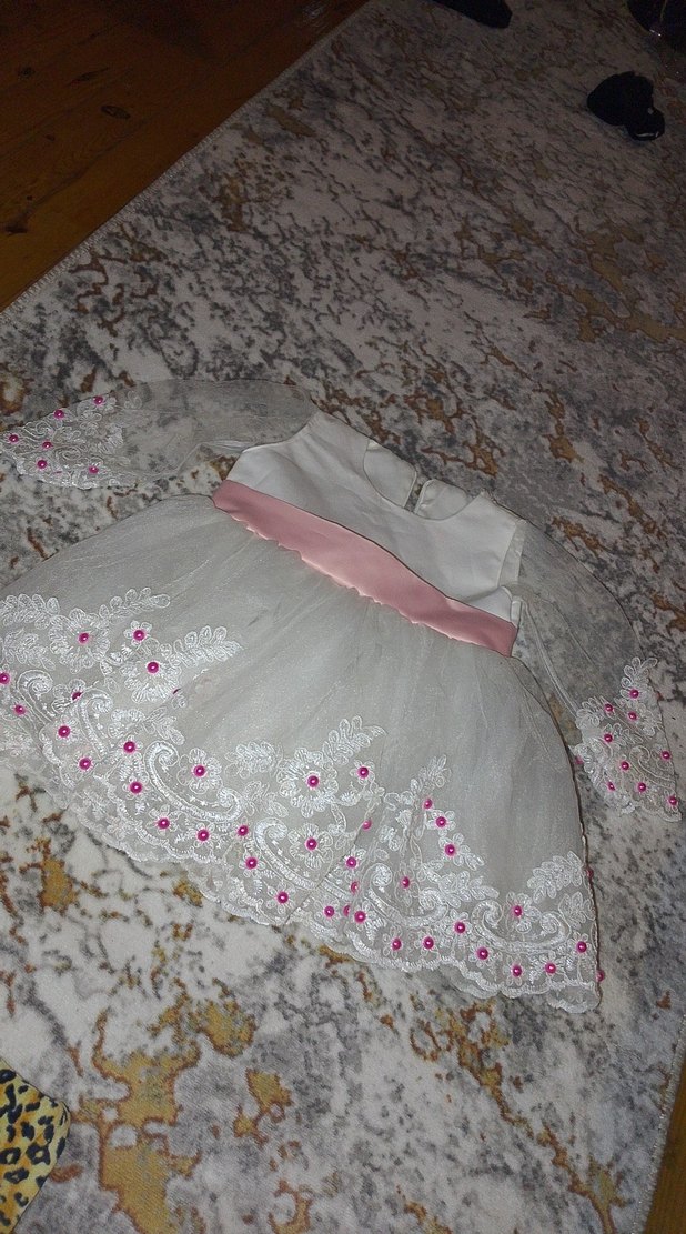 Dantelli Beyaz Kız Çocuk Elbisesi doğum günü elbiesi