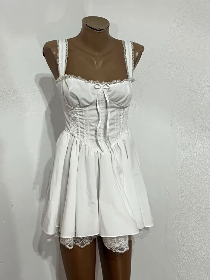 Dantelli Beyaz Mini Strappy Elbise