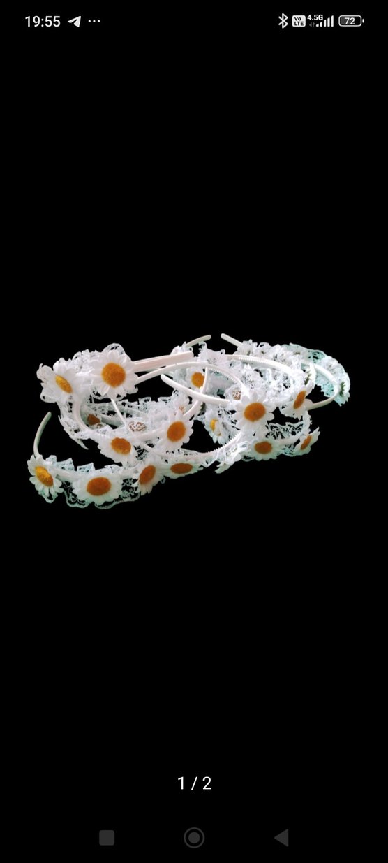Beyaz dantel ve örme kumaştan yapılmış, papatya detaylı bohem tarz saç aksesuarı.