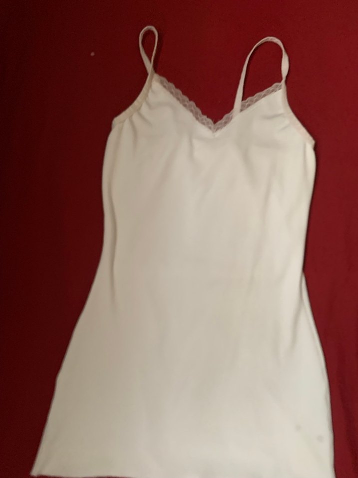 Pamuk kumaştan yapılmış, dantelli V yakalı beyaz, vücuda oturan kadın atlet, günlük kullanım için uygundur.