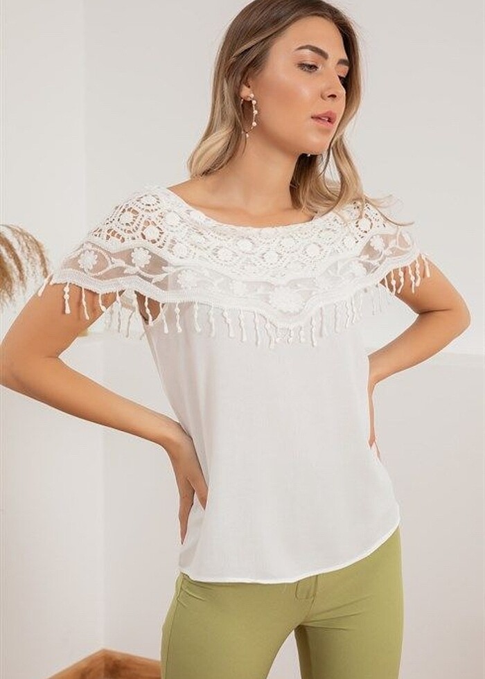Pamuklu dantel detaylı bluz etikette m yazıyor ama kalıp s beden temiz kusuru yok marka temsilidir