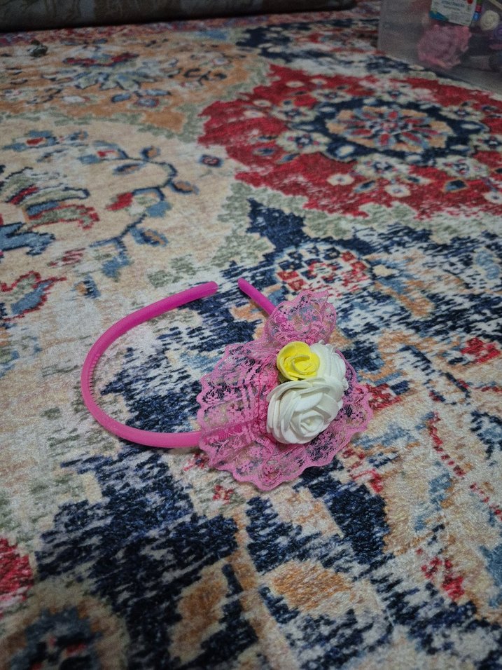 Pembe çocuk taç, dantel ve tie-dye desenli, beyaz ve sarı çiçek süslemeleriyle bohem ve retro tarzda tasarlanmıştır. ✨ "Tüm ürünlerim özenle seçilmiş, %100 sıfır ✅ ve uzun ömürlüdür. Kalite, uygun fiyat ve güvenilir alışveriş benim için en önemli ilkedir. Siparişleriniz aynı gün kargoya verilir, güvenli paketleme ile sorunsuz şekilde size ulaşır. Memnuniyet garantilidir."