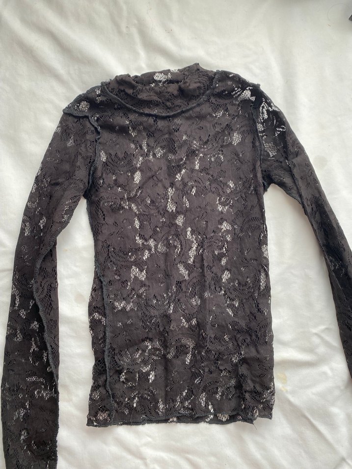 Yumuşak keten kumaştan dantel detaylı, uzun kollu ve yüksek yakalı bu dar kesim gri bluz, gotik tarzı yansıtıyor. Normal midi uzunluğunda, günlük kullanım için uygundur.