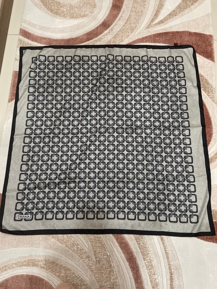 Yumuşak sentetik kumaştan, geometrik desenli ve dantelli gri kadın eşarp, bohem ve retro tarzlar için uygundur.
