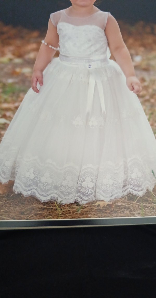 İşlemeli dantelli detaylara sahip, yumuşak triko kumaştan üretilmiş, bol kesim beyaz kız çocuk eteği.