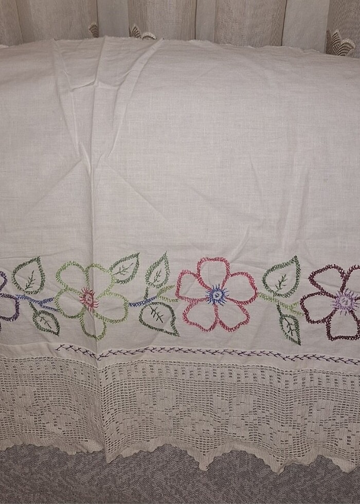 Eni 50,boyu 70 cm olup, tamamen değerlendirmelik bir üründür. Kenarlarını düzenleyerek,örtü olarak kullanabilir, pano gibi dekoratif ürünler yaptırabilirsiniz.