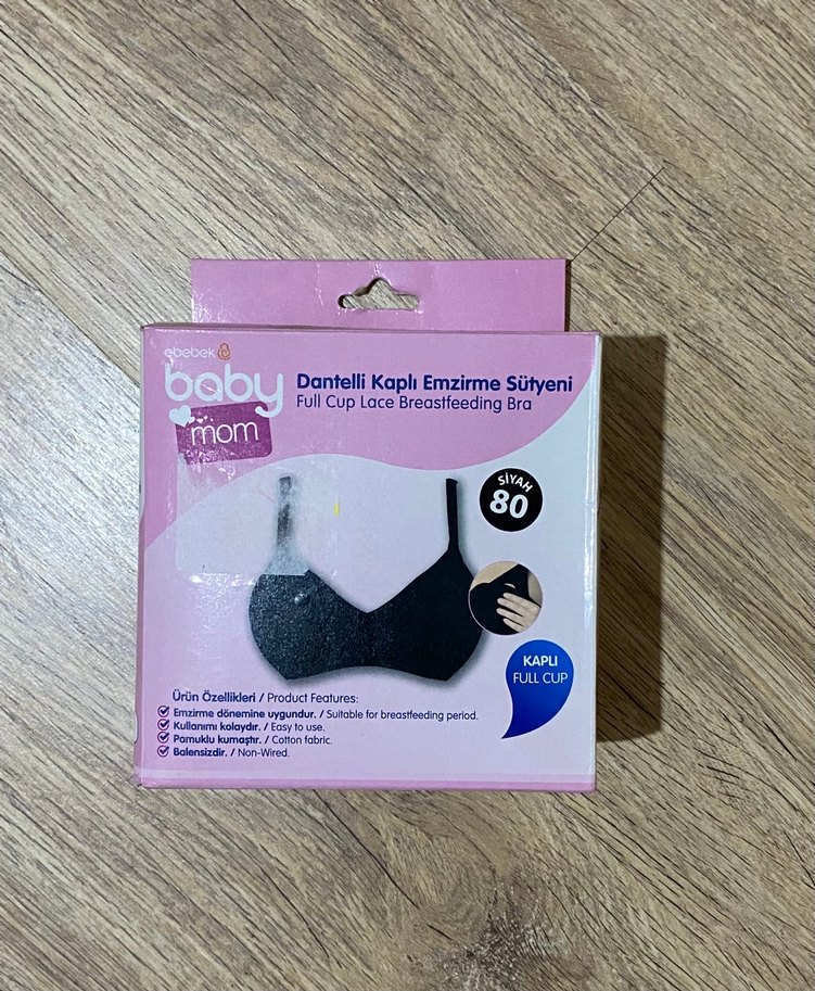 Siyah renkte, dantelli full cup emzirme sütyeni. Kullanımı kolay, yumuşak kumaştan ve balensizdir. Emzirme dönemi için uygundur. Ürün kullanılmamıştır. Değişim ve iade yoktur.