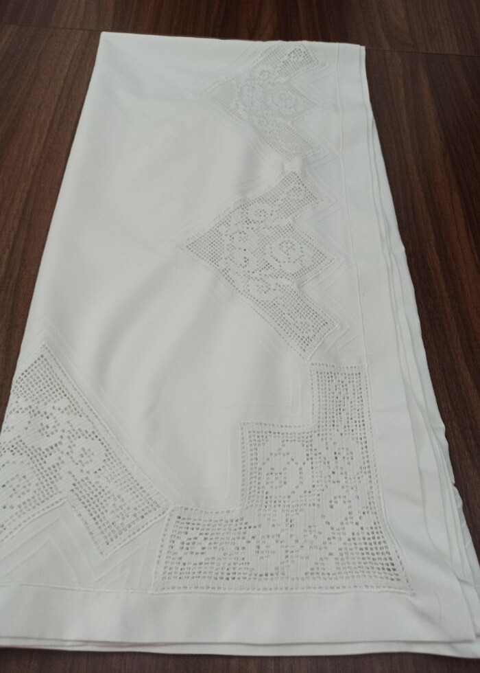 Dantelli kare masa örtüsü 140 cm ölçülerinde. Çok az kullanıldı. Kumaşında çok küçük bir aşınma var resmini ekledim. Marka temsilidir.
