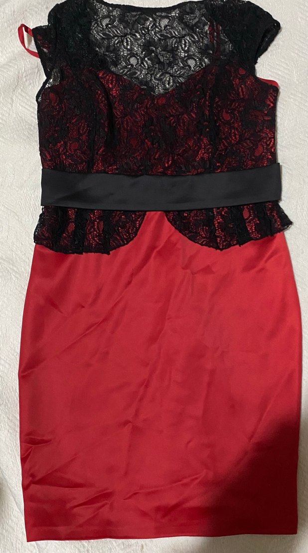 Özel günlerde giyilebilecek kırmızı-siyah dantelli elbise. Üst kısmı dantel, bel kısmı siyah kuşaklıdır. Vücuda oturan, şık ve zarif bir modeldir. • Beden: 36 (EU) / US 4 / UK 8 • Durum: Çok iyi, yıpranma yok • Fermuarlı, astarlı • Diz hizası boy dar kesim, straplez midi elbise, koyu kırmızı kumaş ve siyah dantel detaylı, siyah bel bandıyla cesur gotik tarz için uygundur.