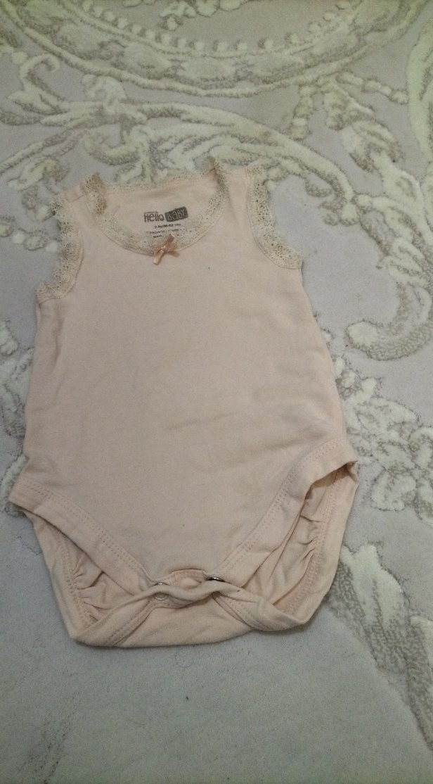 Kolsuz, dantelli detaylara sahip bej renkli bebek body, straplez yaka ve yumuşak kumaştan üretilmiştir.