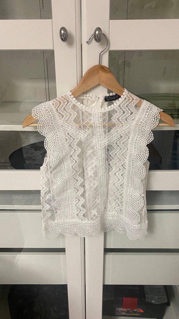 dantelli kolsuz beyaz crop üst etıketlı hıc gıyılmedı s bedendır