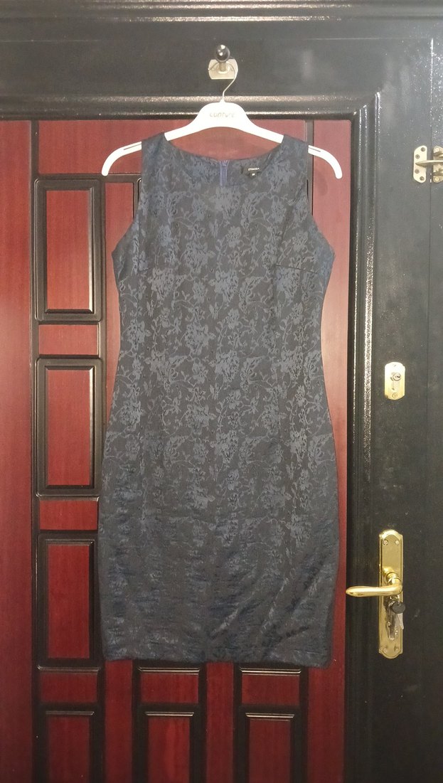 Dantelli, kolsuz, siyah midi elbise, klasik ve gotik tarzı yansıtan ofis için uygun kesimle.