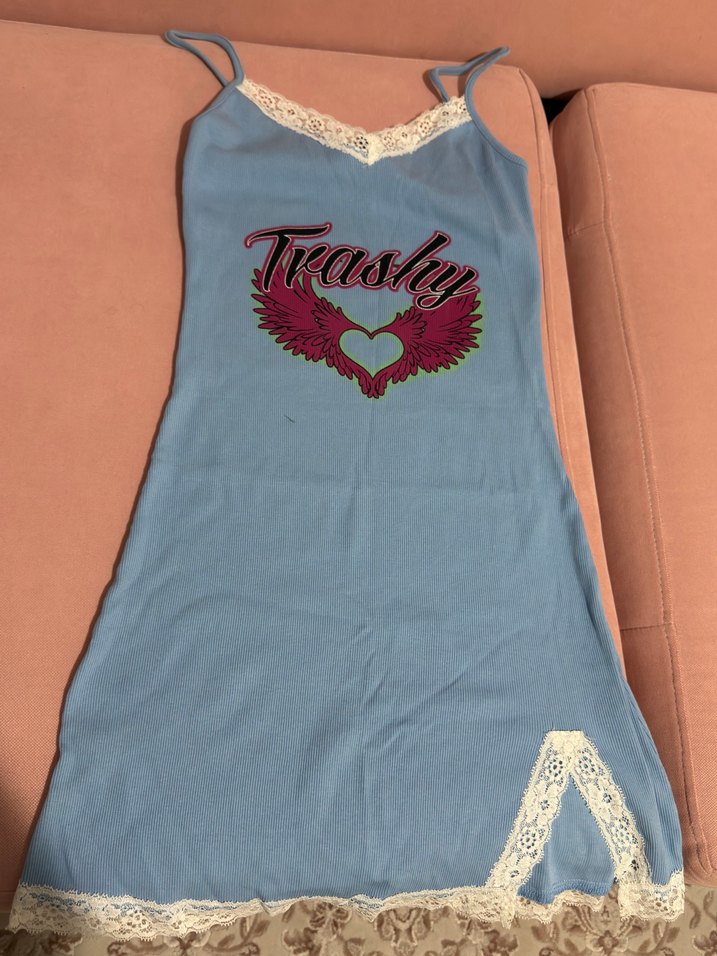 Dantelli, askısız ve kolsuz hamile geceliği, pastel mavi renkte ve baskılı. Midi boyu ve vücuda oturan kesimiyle rahat kullanım sağlar.