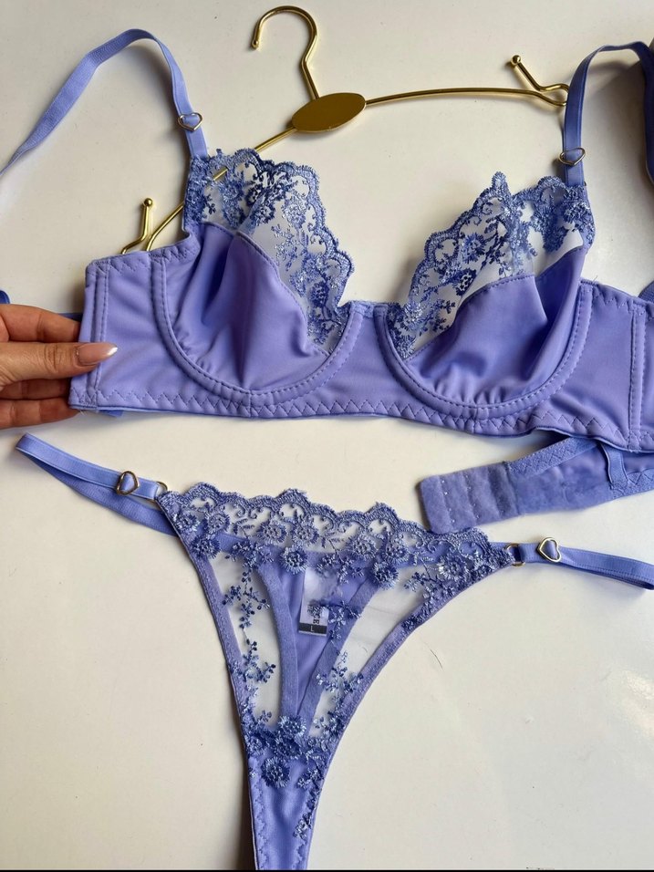 Pastel mor renkli, dantel detaylı sütyen ve tanga takımı. Premium kalite micro kumaş rahat ve şık. Balenlidir, tangası ayarlamalıdır. Bedenleri mevcuttur.