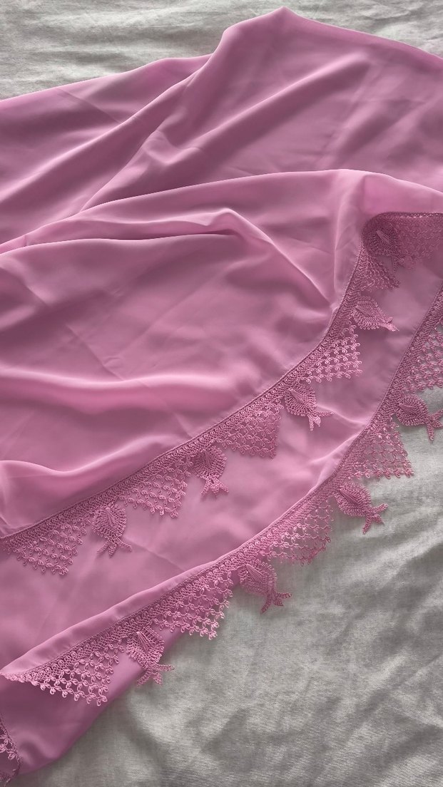 Dantelli Pembe İpek Görünümlü Kadın Fuları