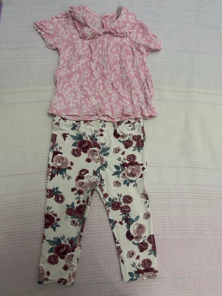Pastel pembemsi kısa kollu üst, dantel detaylı ve hafif tie-dye desenli. Alt ise çiçek desenli rahat pantolon. Bebek kız takımı.üst hediye alt satılıktır