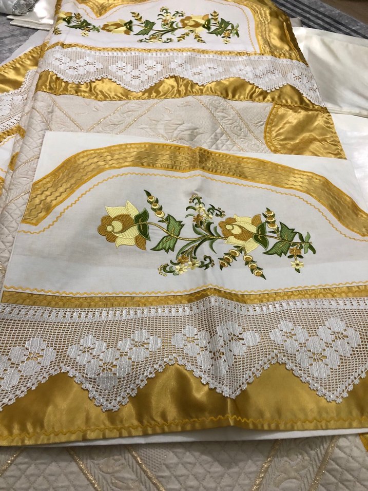 Sadece çeyizde kullanıldı ufak tefek sarı lekeler var 2 yastık kılıfı çarşaf ve pikeden oluşuyor