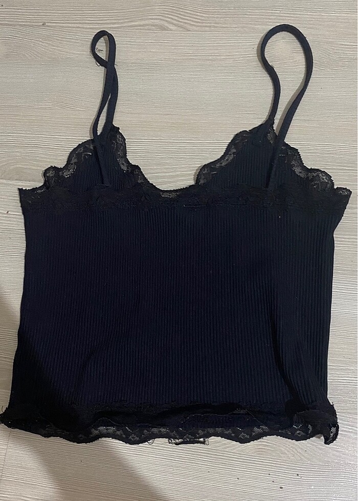dantelli siyah askılı crop