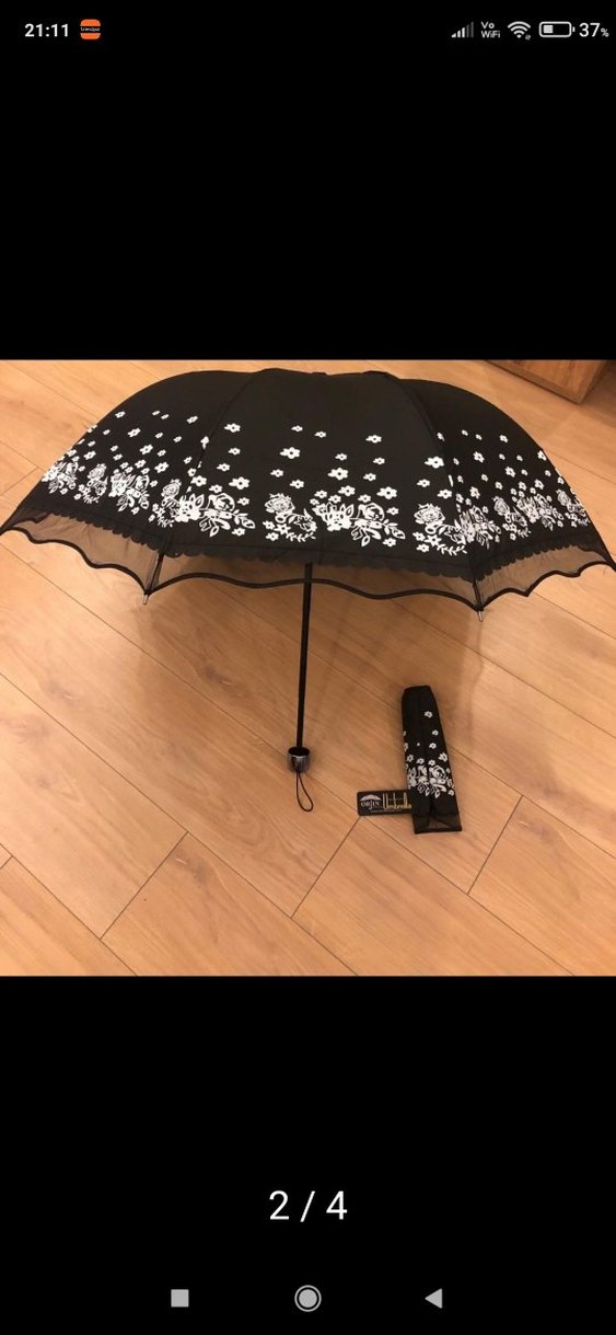 Dantel kenarlı, beyaz çiçek desenli siyah kadın şemsiye, gotik ve Paris tarzını bohem dokunuşla birleştiriyor. Kompakt ve şık. ☂️