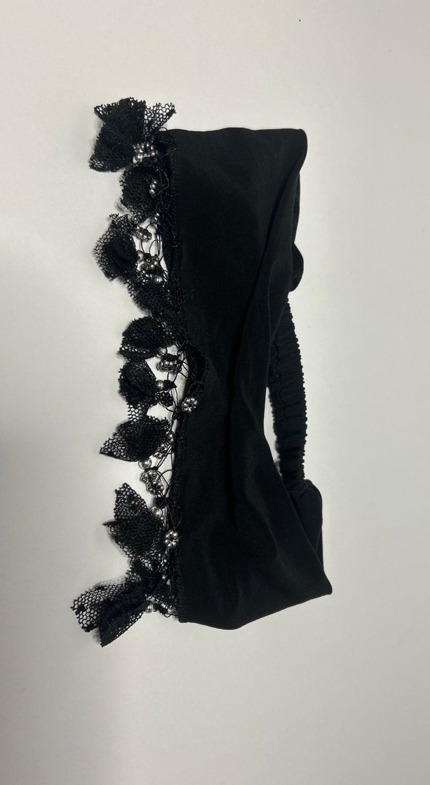 Sentetik kumaştan yapılmış, dantelli detaylara sahip siyah gotik tarzda saç bandı.
