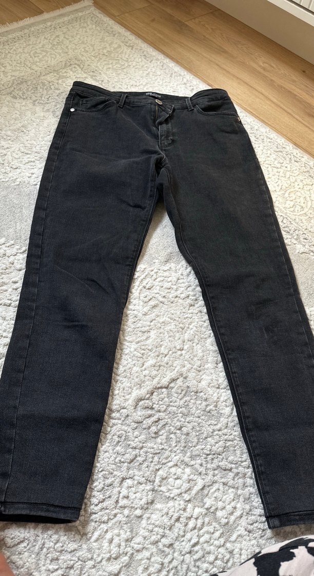 Dantelli, normal boy, regular kesim siyah kadın kot pantolon. Günlük rahat kullanım için uygundur.