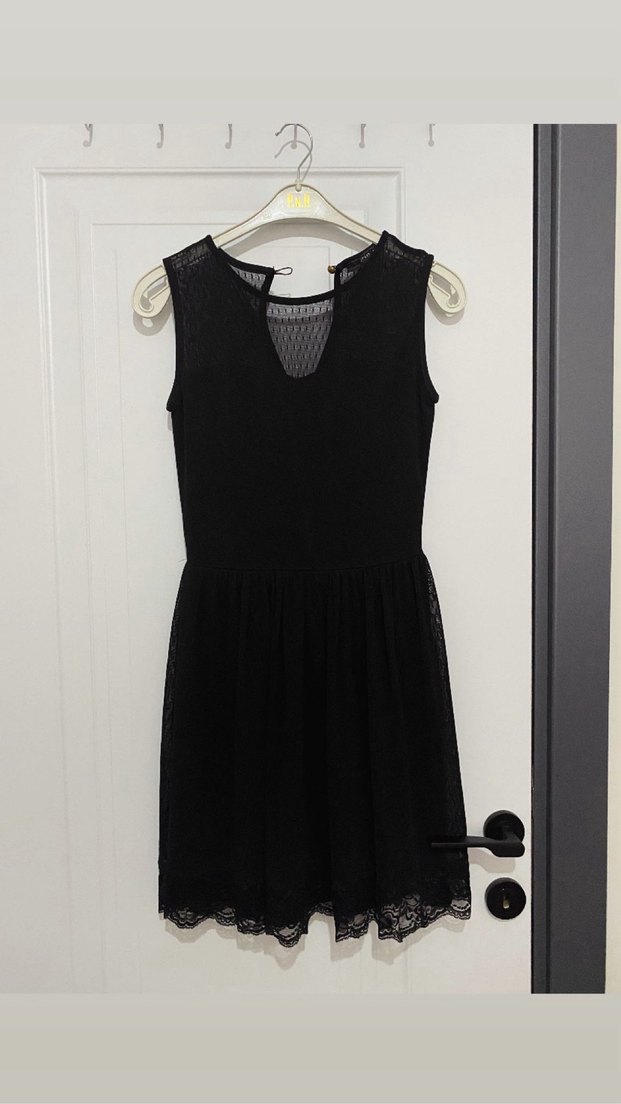 Dantelli Siyah Midi V Yakalı Kadın Elbise