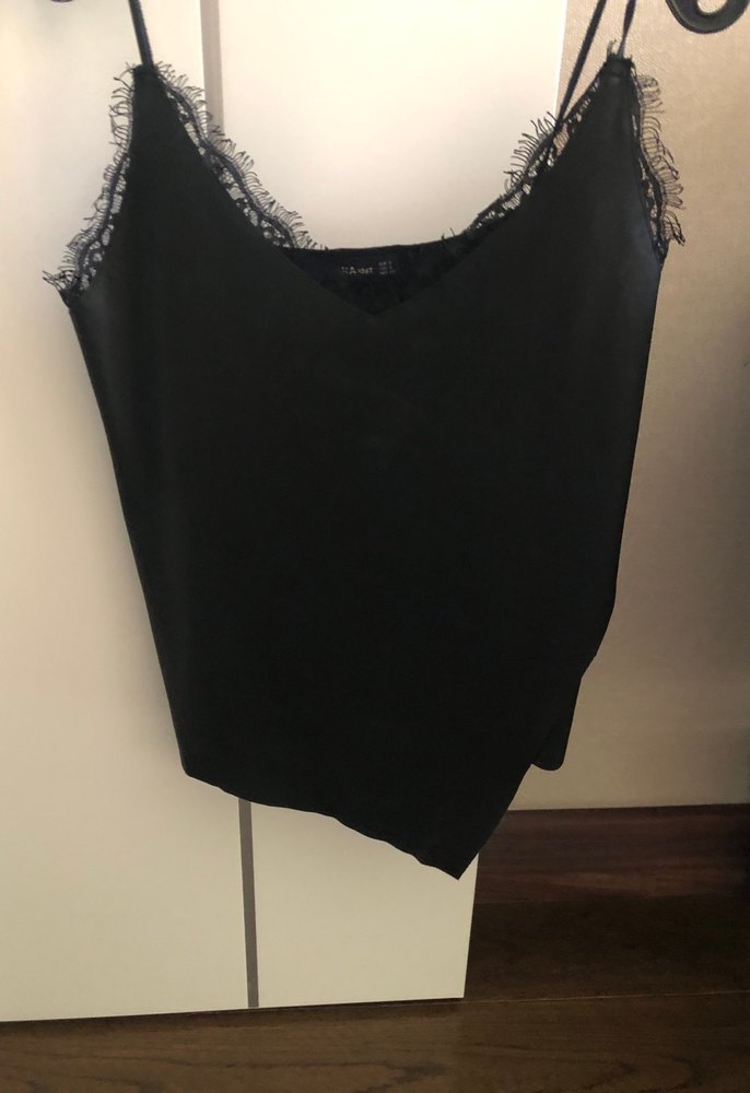 Zara askılı etek ucu asimetrik deri triko askılı bluz