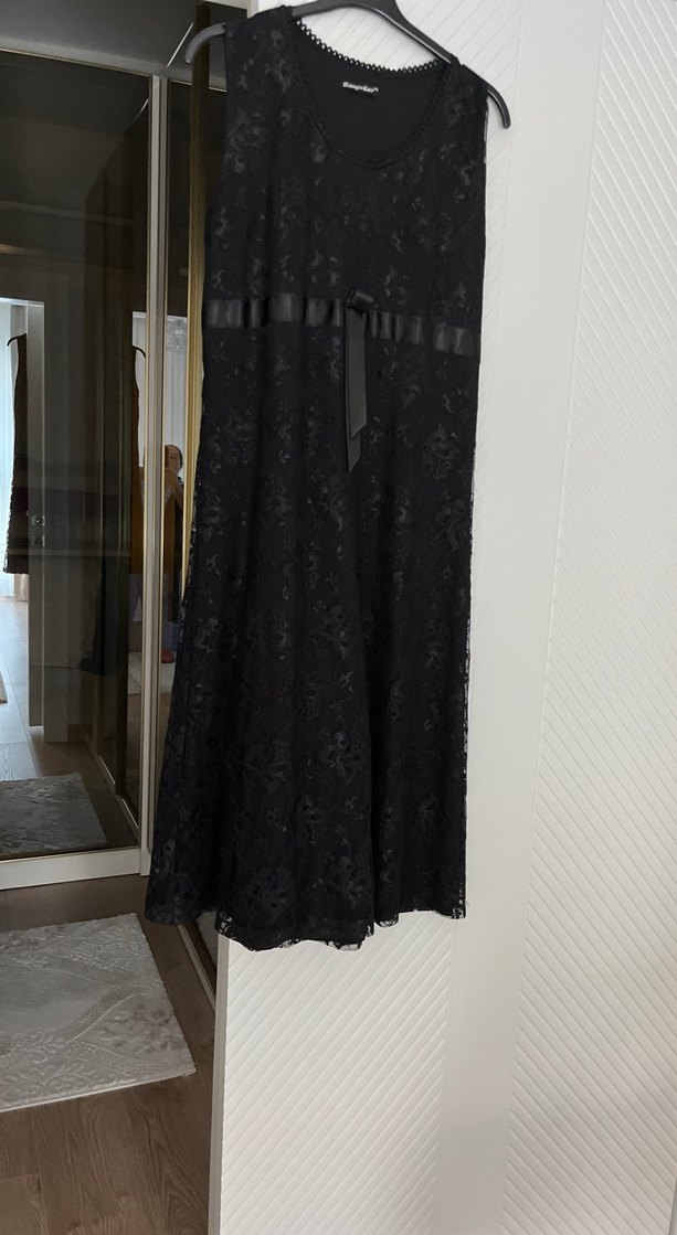 Dantelli Siyah Straplez Uzun Kadın Elbise
