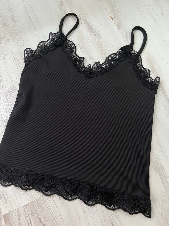 Dantelli Siyah V Yaka İnce Askılı Atlet