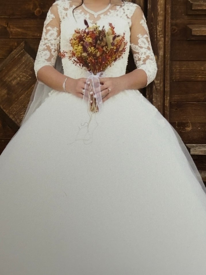 Özel dikim. Dantel işlemeleri mevcut. Duvağı tarlatanı içinde. Kuru temizlemeye gönderilip verilecek
