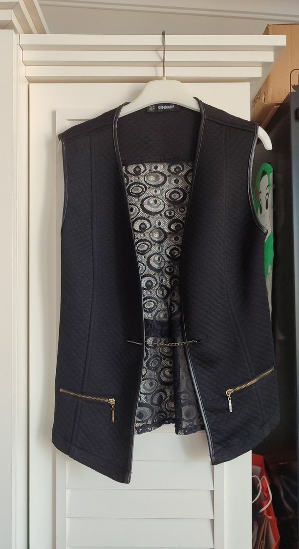 Sadece demir kısmında renk solması var uzun zamandır dolabımda bekliyordu giymediğim için satıyorum bir kusuru yoktur çok şık bir yelektir.