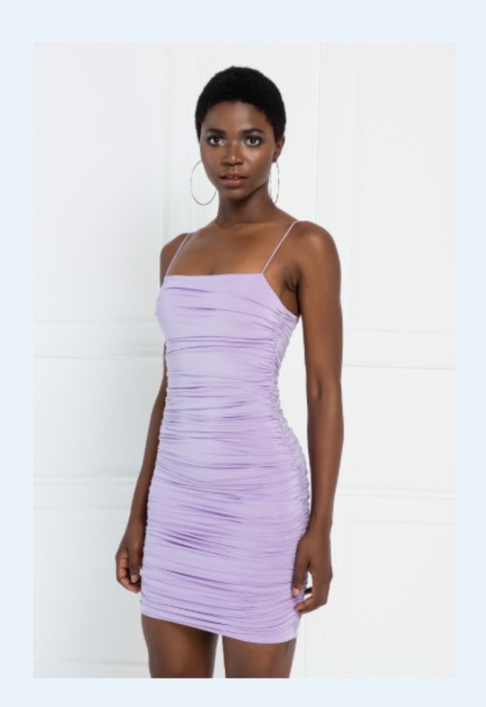 Dar Büzgülü Lila Askılı Mini Elbise