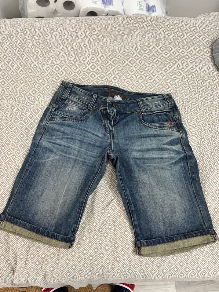 Mavi renkte, dar kesim kot şort. Günlük kullanıma uygun rahat ve kısa boy sokak stili şort.