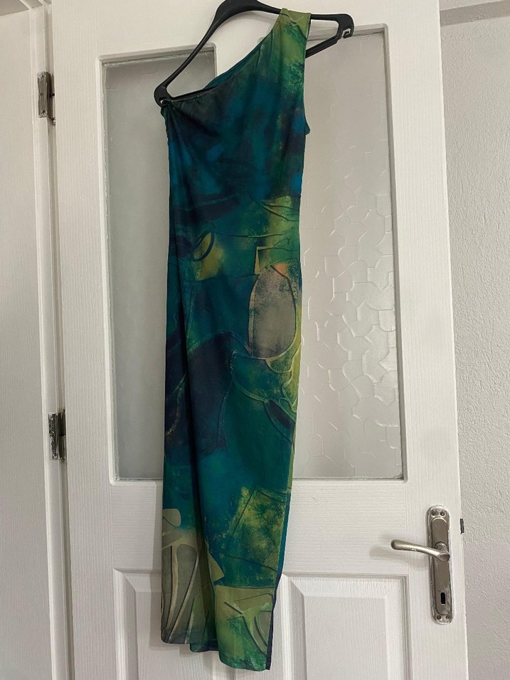 dar kesim tek omuz elbise ön kiski drapelidir 1 kez kullanilmistir