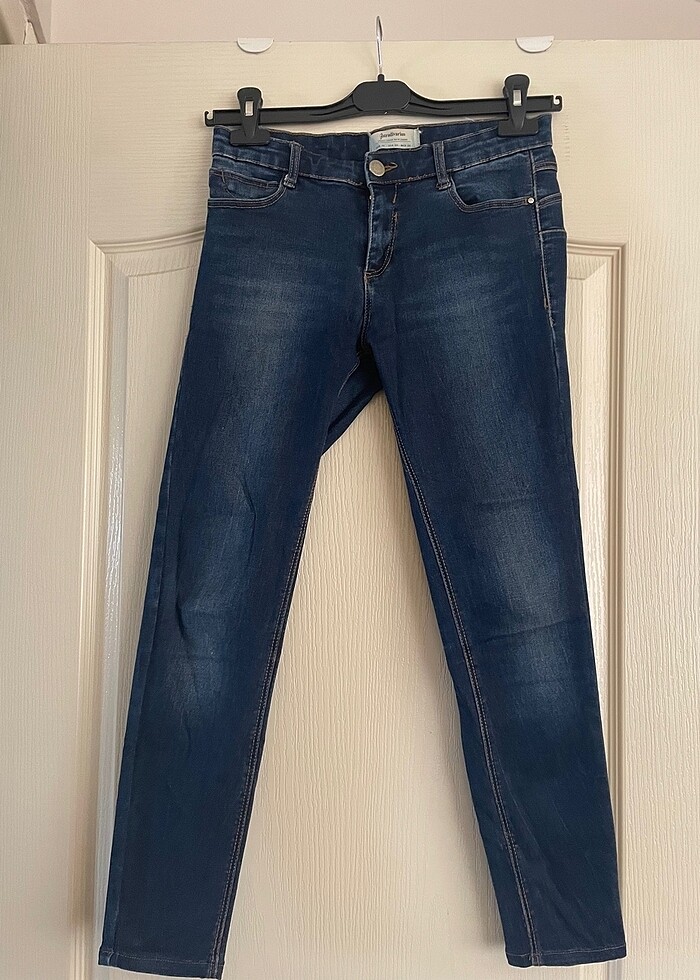 Normal bel, Esnek kumaş skinny jean. Koyu renk sorunsuz. 95cm ağdan paça