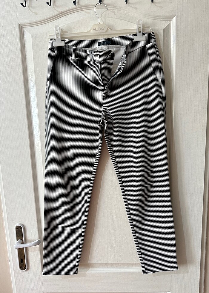 Çizgili dar paça pantolon. Beli 38 cm boyu 69cm