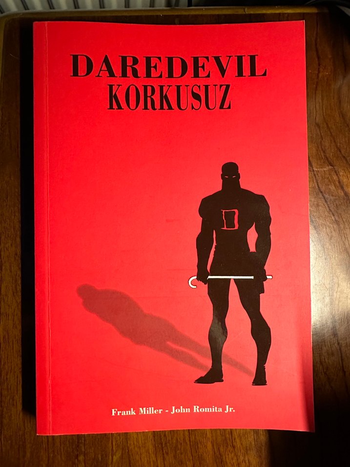 Daredevil Korkusuz, Frank Miller ve John Romita Jr. tarafından çizilmiş bir çizgi roman. Kapağında Daredevil silueti yer alıyor. ♂️