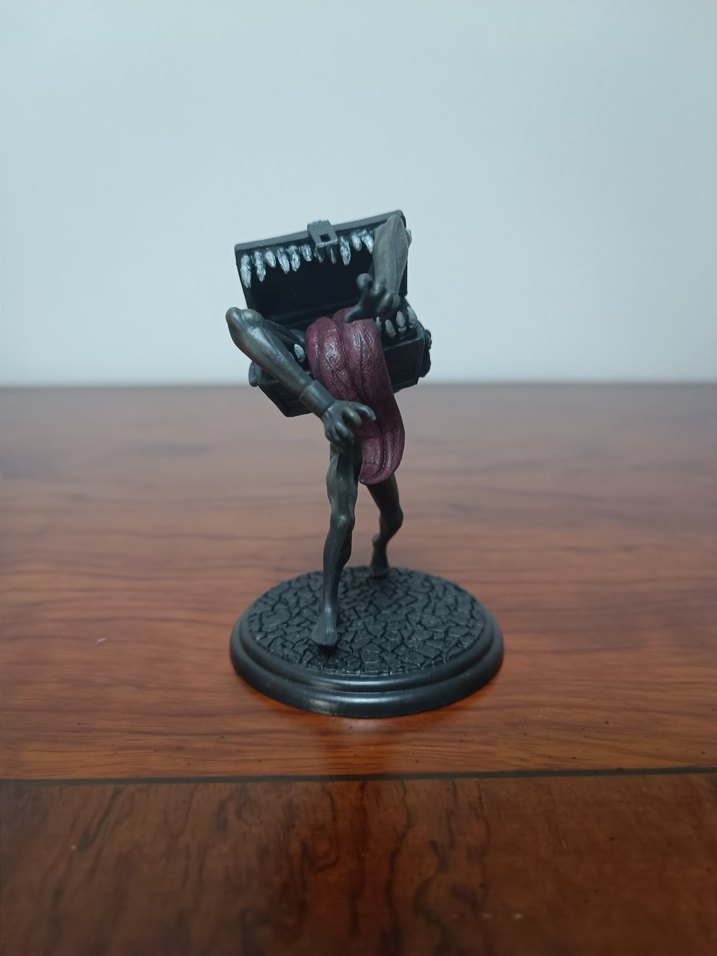 Kara renkli, canavar görünümlü gövdesi ve uzatılmış dili olan aksiyon figürü, dokulu bir kaide üzerinde duruyor.