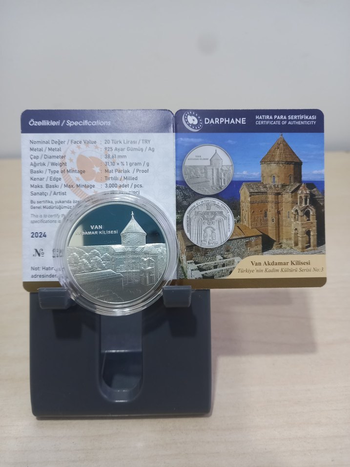 2024 tarihli Darphane hatıra parası, Van Akdamar Kilisesi tasarımıyla gümüşten üretilmiştir. Altın renkli sertifikası ve 31,1 gram ağırlığı vardır.