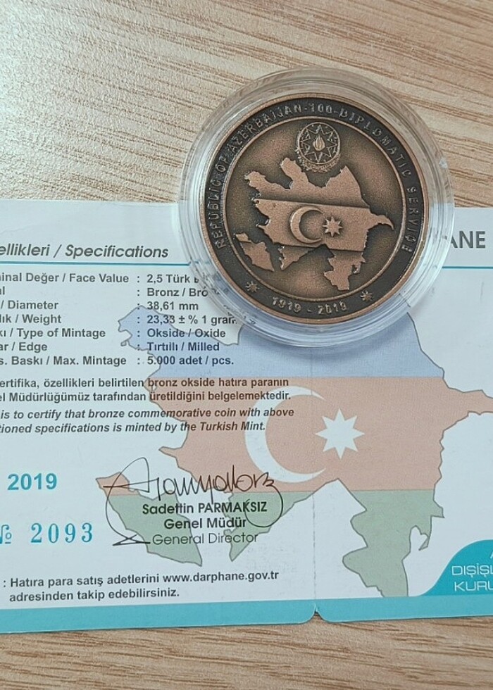 Darphane Azerbaycan Dışişleri Bakanlığının Kuruluşunun 100.yılı Hatıra Para Çil üründür #darphane #dışişleri #bakanlığının #kuruluşunun #100.yılı