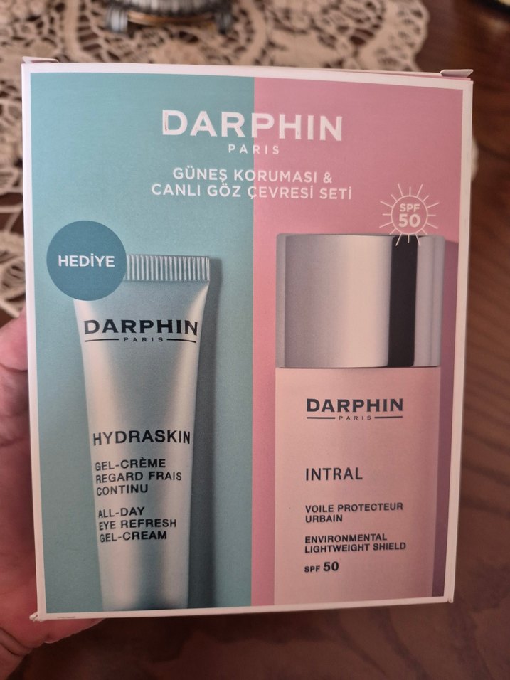 Darphin Paris güneş koruyucu SPF 50 içeren hafif jel-krem ve göz çevresini canlandıran all-day göz tazeleme jel-krem seti.