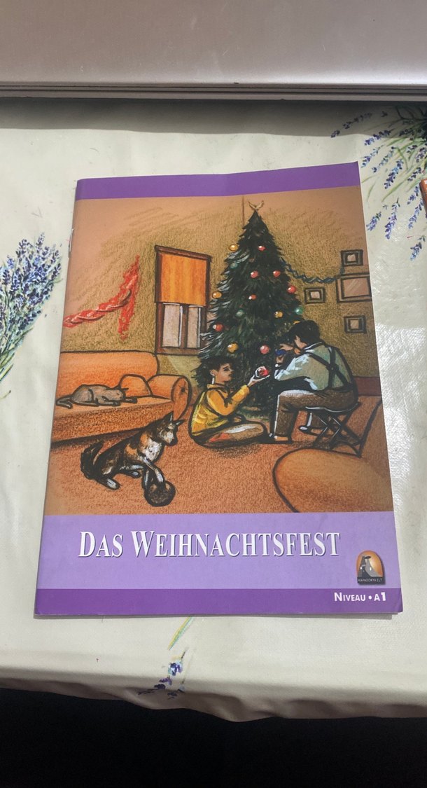 Das Weihnachtsfest adlı hikaye kitabı, A1 seviyesindeki okuyucular için uygundur. Kitapta süslenmiş bir yılbaşı ağacı ve çocuklar yer alır.