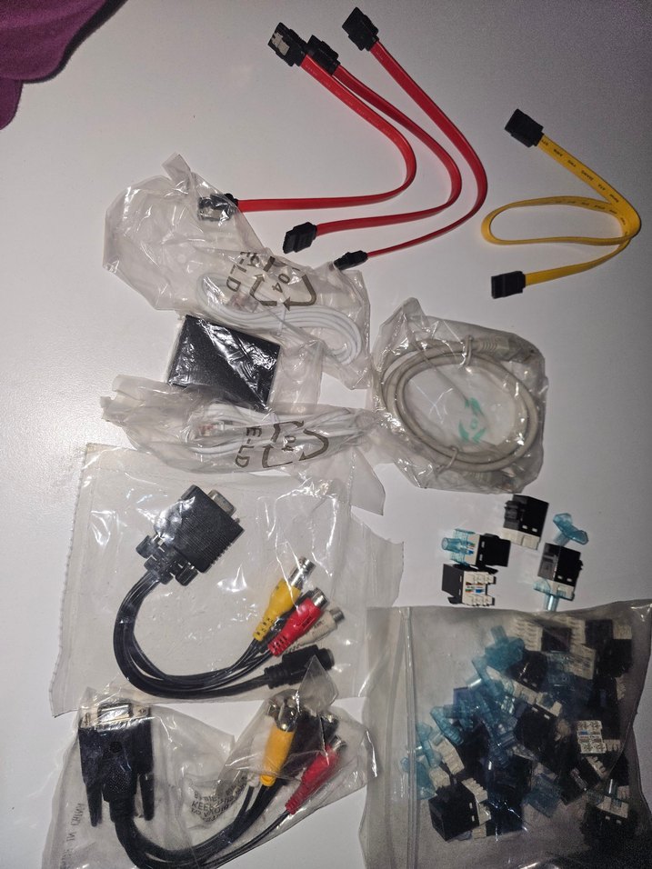 Kırmızı ve sarı SATA kabloları, ses-görüntü konnektörleri ve çeşitli elektronik bileşenlerden oluşan renkli kablo ve adaptör seti. ️Toplu satılır