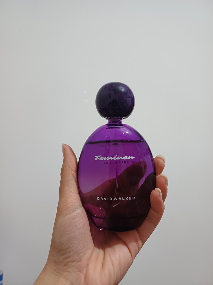 David Walker Feminen kadın parfümü, yuvarlak kapaklı mor şişede sunulur ve kendine özgü bir kokuya sahip. 100 ml
