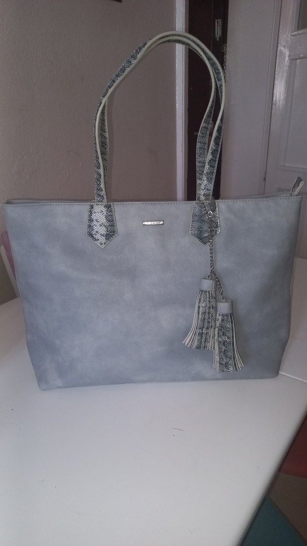 DAVİDJONES MARKABuz mavisi Yılan Desenli Püsküllü Kadın Çanta