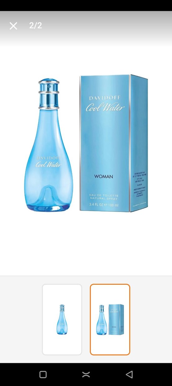 Davidoff Cool Water Woman, 100 ml doğal sprey, ferah ve su gibi taze kokusuyla mavi şişede sunulur.