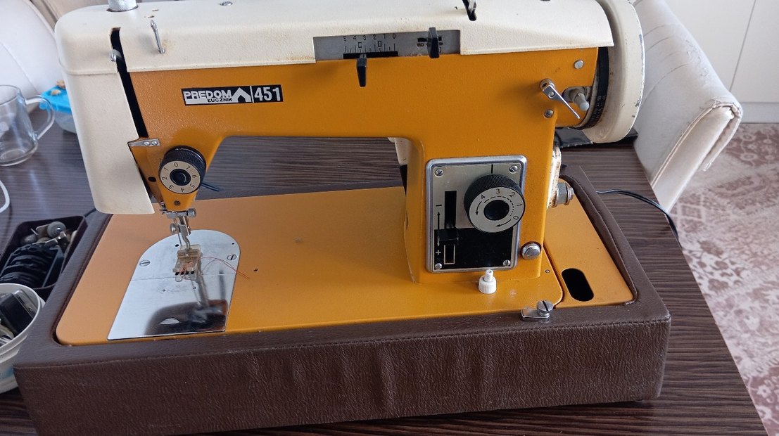 Parlak sarı 451 model dikiş makinesi, ayarlanabilir dikiş uzunluğu ve manuel dikiş seçici düğmeye sahipt çok amaçlı nakış düğme detayları çok videosu var motoru sağlam eksik yok pahalı ürün aklınıza takılan her şeyi sorun cevap vereyim hayırlı olsun